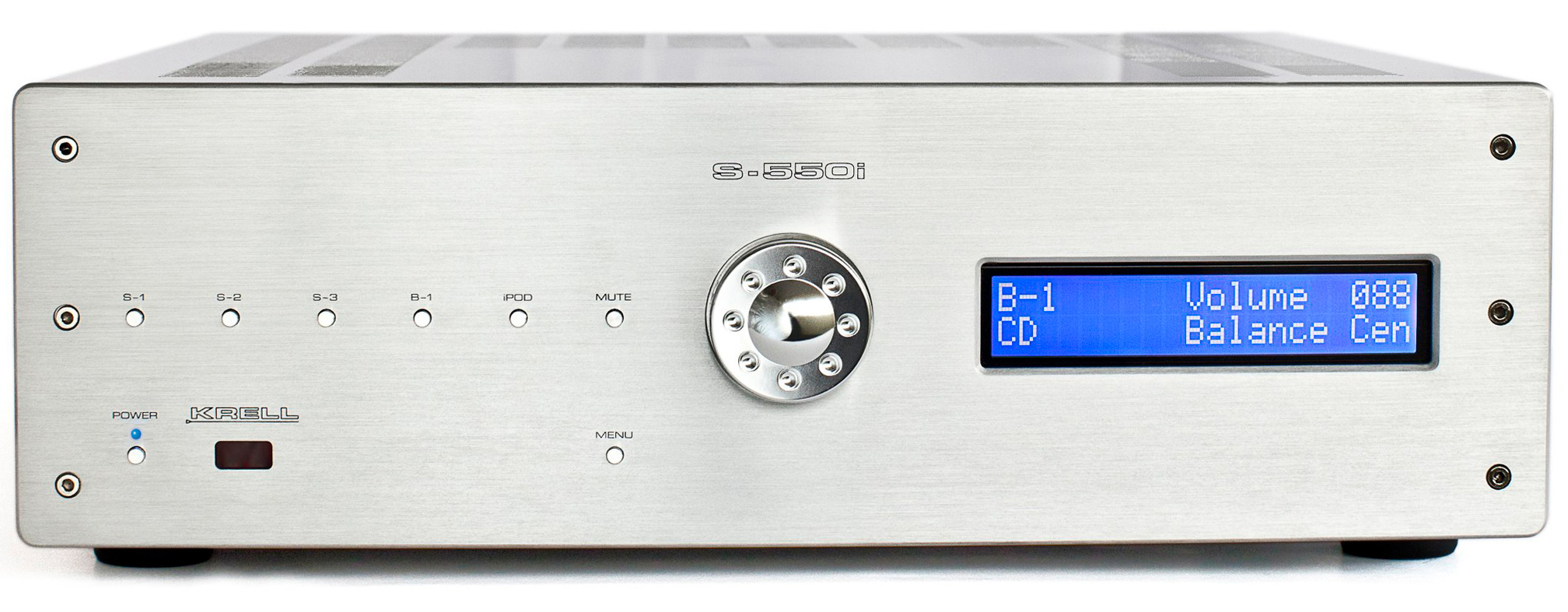 Delivering 275 watts of output, the S-550i Integrated Amplifier is a robust power source for any speaker and only occupies a fraction of the space typically required for a system delivering this performance. The S-550i Integrated Amplifier is outfitted with balanced and single-ended inputs, iPod dock, and Theater Throughput™ mode. Developed by Krell, Theater Throughput™ simplifies integration into home theater systems. For custom integration applications, 12 Volt triggers, RS-232 connectivity and rack mount ears are included. Operational parameters can be customized via the menu system that is accessible from the front panel or the included brushed Aluminum remote control.