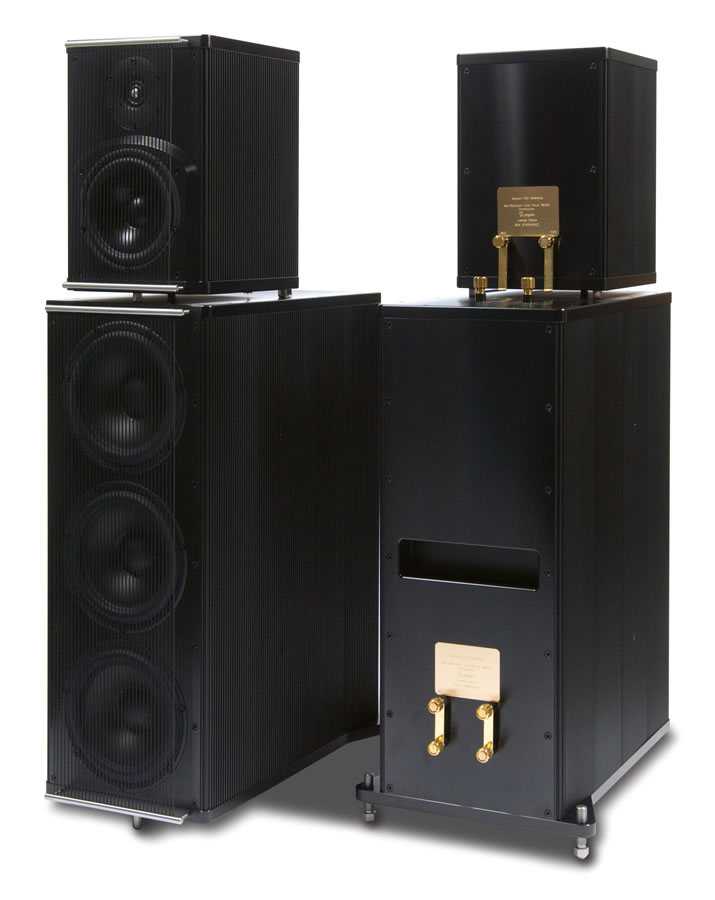The Modulari Duo Reference combines a Modulari subwoofer tower with the Modulari Primo two-way minispeaker. Because the 260-pound subwoofer tower and the 85-pound Primo are crafted out of solid aluminum slabs ranging from 1/2 inch to 1 inch in thickness, they are free of the sonic resonances that plague enclosures made from wood or MDF.