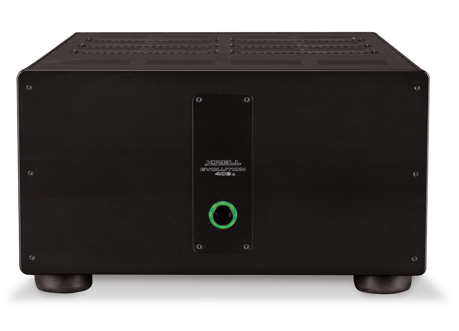 The Evolution 403e is equipped with two 3,000 VA transformers and 188,000 µF. This power source is the backbone for the output of the Evolution 403e. With this foundation, the Evolution 403e delivers 400 watts into 8 Ohms and 800 watts into 4 Ohms with three channels driven simultaneously. The FTC mandates that power ratings are quoted using a 1,000 Hz sine wave into a fixed 8 Ohm resistor with final power specification stated at 1% distortion. Krell engineering considers this specification too lenient and not indicative of what an amplifier is required to provide. Krell designs to a much stricter standard. Our power tests use a 20-20,000Hz signal into 8, 4, and 2 Ohm loads. Our power tests use a 20-20,000Hz signal into 8, 4, and 2 Ohm loads with our final specifications stated for .1% distortion.