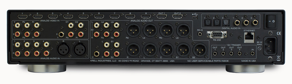 Krell designed the Foundation with flexibility and ease-of-use in mind, with extensive routing capability of the audio inputs to the various outputs. During setup, the specific paths will be chosen based on how the user intends to use each source, displays, and audio output channels.