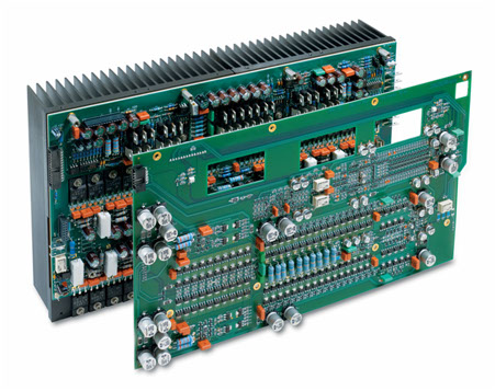 Krell Active Cascode Topology offers several performance advantages. It breaks through bandwidth limitations of conventional designs and delivers very high current. The power bandwidth of an Evolution 900e is 120 kHz; far greater than the bandwidth of a typical high performance amplifier. The result is near perfect performance in the audible range with no phase anomalies typical of lower bandwidth designs. Because the "work" is spread across multiple devices, the amplifier is more load tolerant. Open-loop output impedance is extremely low-about one hundred times lower than with most power amplifiers-ensuring exceptional speaker control. All of these performance gains are achieved while maintaining a high rail voltage, which provides a beneficial "flywheel" effect-a de facto regulation that enables the amplifier to better deal with sudden changes in power requirement, such as those caused by large signal transients.