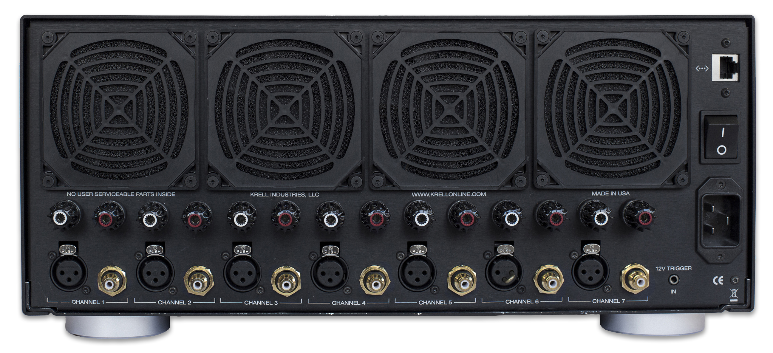 The amplifier design uses Krell Current Mode technology that is fully differential and discrete in the critical gain stages. This results in a highly linear and extended frequency response, well beyond the range of hearing, for smooth effortless highs and tight high impact bass.