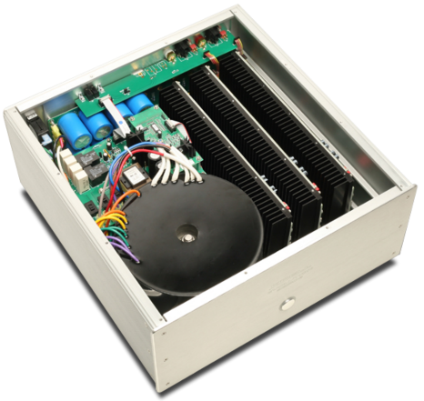 Internal high-current line conditioning circuitry effectively blocks RF noise entering via the AC line and compensates for any asymmetry or DC offset in the power waveforms. The amplifiers' low level and gain stages are powered via multi regulated rails that provide total immunity from supply fluctuations and assure noise-free circuit operation. Primary rail voltages are quasi-regulated, enabling an "on-demand" supply of power that is highly responsive to dynamic load.