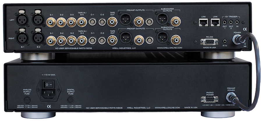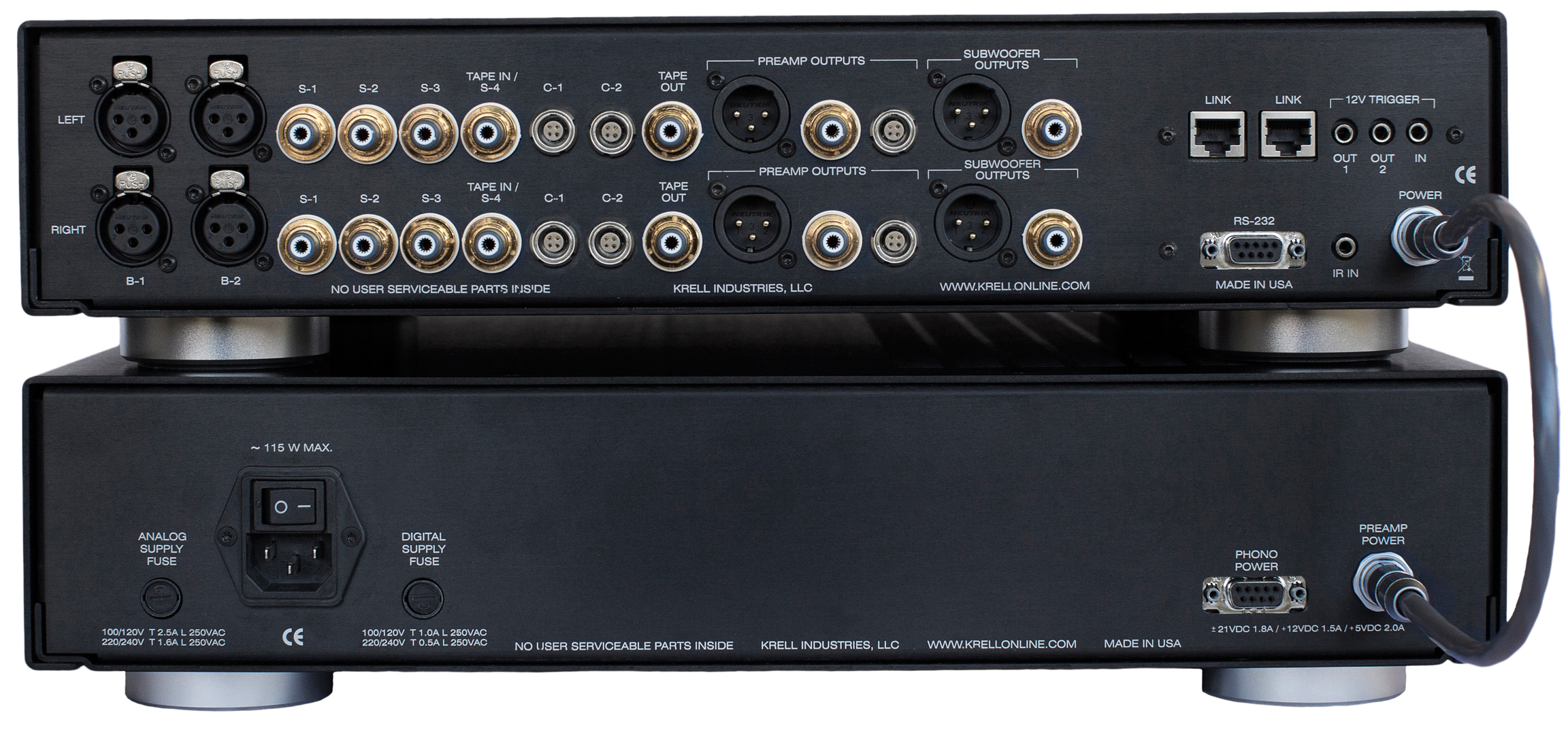 The Illusion audio circuits receive power from a Krell Current Mode analog power supply housed in its own dedicated chassis. The power supply avoids the common integrated circuit topology used in many