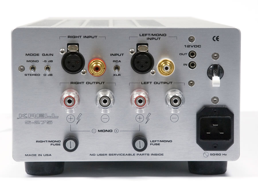 Stereo: 275 W RMS per channel at 8 Ω