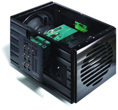 Supporting such prodigious bass output is a massive chassis constructed of 1-inch-thick aluminum with 2-inch-thick speaker baffles. Weighing 400 pounds, this ultra-rigid cabinet ensures the purest low-frequency reproduction, totally free of typical coloration problems caused by resonance and vibration. The chassis features a high-precision diamond-cut finish, which preserves the natural beauty of the aluminum while providing a distinctive appearance that blends elegantly with interior decor.